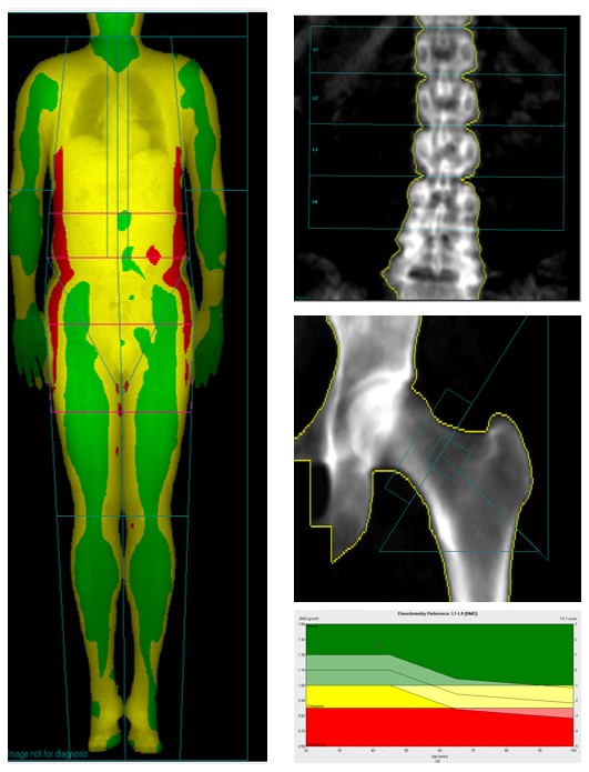 Dual-Energy X-ray Absorptiometry (DXA) is a diagnostic technique crucial for evaluating bone health by measuring bone mineral density (BMD) while Body Composition analyses the overall body makeup, examining the proportions of fat, lean tissue, and bone.